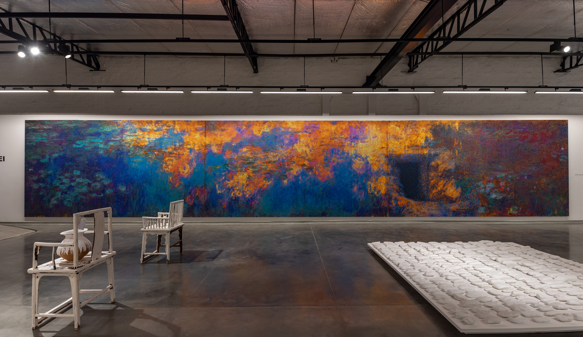 Bringing together a focused selection of works across mediums, the exhibition includes Ai Weiwei’s large-scale toy-brick compositions Surfing (After Hokusai) and Water Lilies, alongside works that reflect his long-standing investigation into material evidence, cultural memory, and the politics of images.