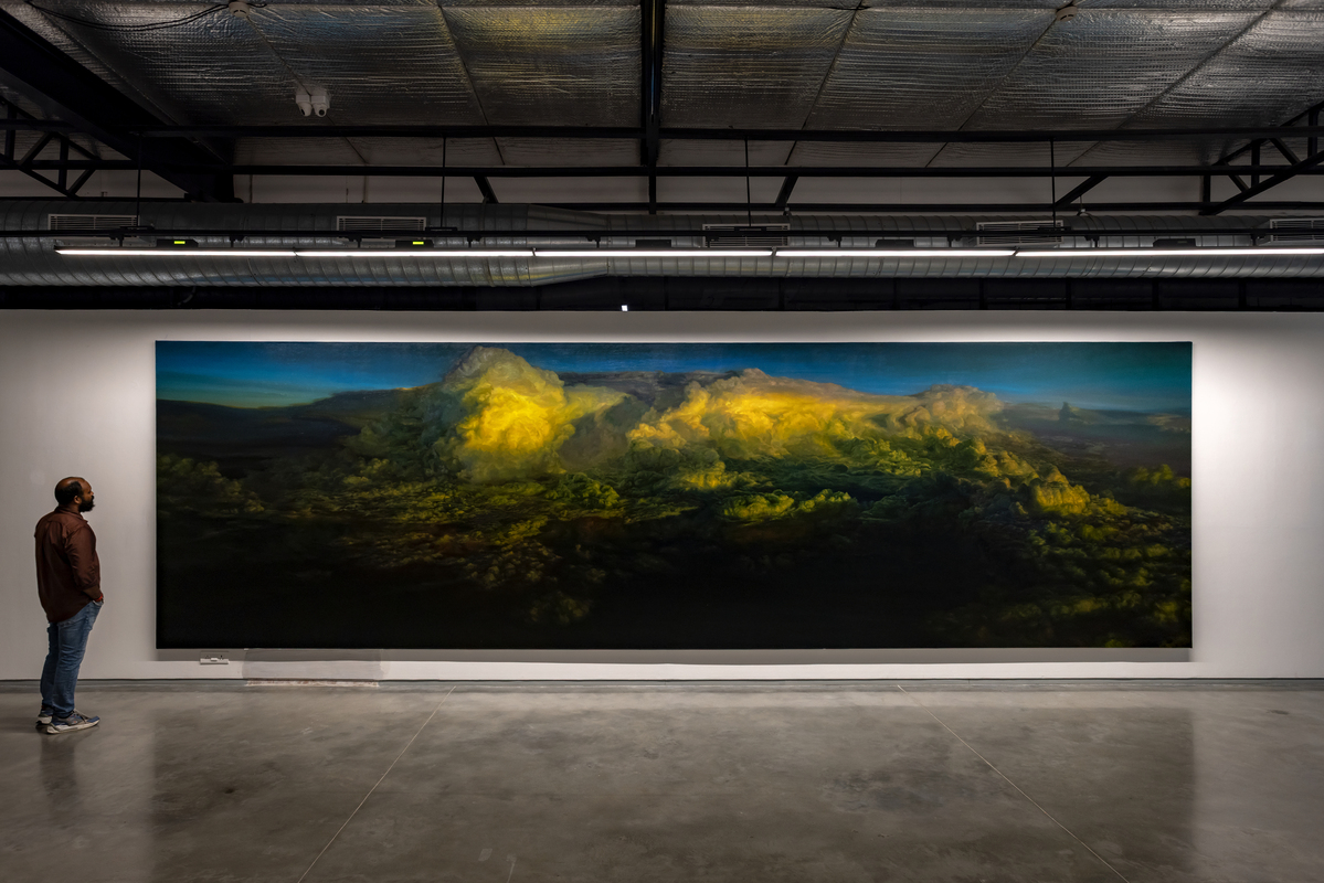 Known for a style of hyper-realistic painting that has addressed both figurative and architectonic subjects, there is a stillness in Abir Karmakar’s paintings that asks for time. At first, you see an expanse of sky, a sweep of sand, a quiet room. But the longer you look, they begin to shift. Colours deepen, light changes, and the movement of the hand emerges. His work invites you to notice the presence within absence, the human trace in places that appear empty.