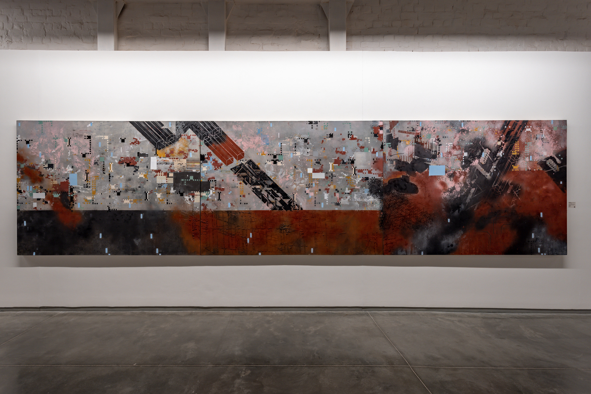 Taking advantage of the ample space of Nature Morte’s Dhan Mill gallery space, we present a group of excessively large works that communicate authority, power, and prestige. The paintings in the exhibition showcase wildly divergent styles: in the case of Nidhi Agarwal, cartoonish figuration is fused with aggressive abstraction; the landscapes of Basist Kumar are both ethereal and other-worldly; and Neeraj Patel has developed a style of abstraction that is sourced from the digital realm of computer coding. Included will be examples from Ayesha Singh’s series entitled “Skewed Histories,” these being re-imagined architectural fragments that reflect upon the effects of time and the mutability of history.