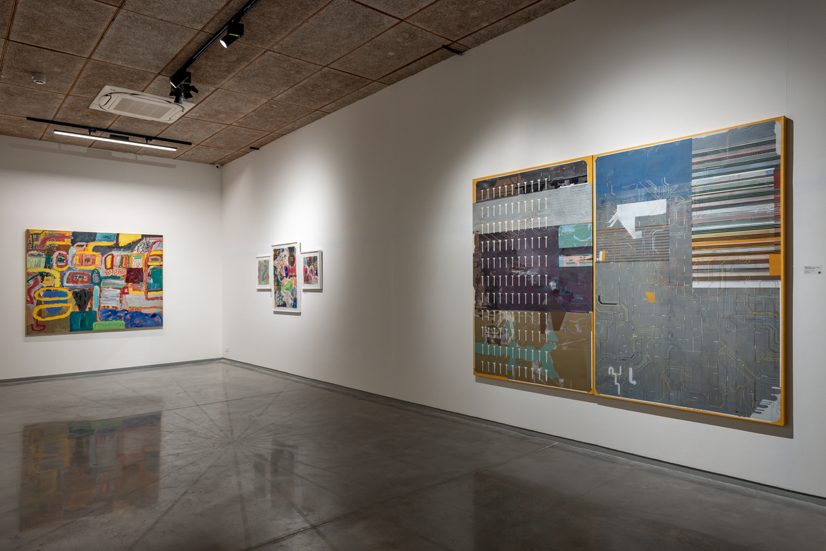 Patel is a painter who explores multiple mediums in order to bring a diversity of approaches to his language. The large-scale paintings develop Patel’s particular style of abstraction that he has culled from a digital reality. The artist states that he is interested in the faults, glitches, and errors in the systems we interact with on a daily basis, and his paintings resemble computer coding or the sequencing of genetic material. This is a reality we know through science, hypothetical postulates which we have come to accept as the foundations of our world. While Patel’s paintings acknowledge their ancestry in the schools of geometric abstraction founded by Kazimir Malevich and Piet Mondrian and the minimalism of Nasreen Mohammedi and Sol Lewitt, they are equally indebted to the interfaces and patterns we inhabit through our SmartPhones. There is a studied elegance to Patel’s paintings, his repetitive mark-making and precision engaging both a handmade and a machine-made approach. Patel lives and works in Baroda.
