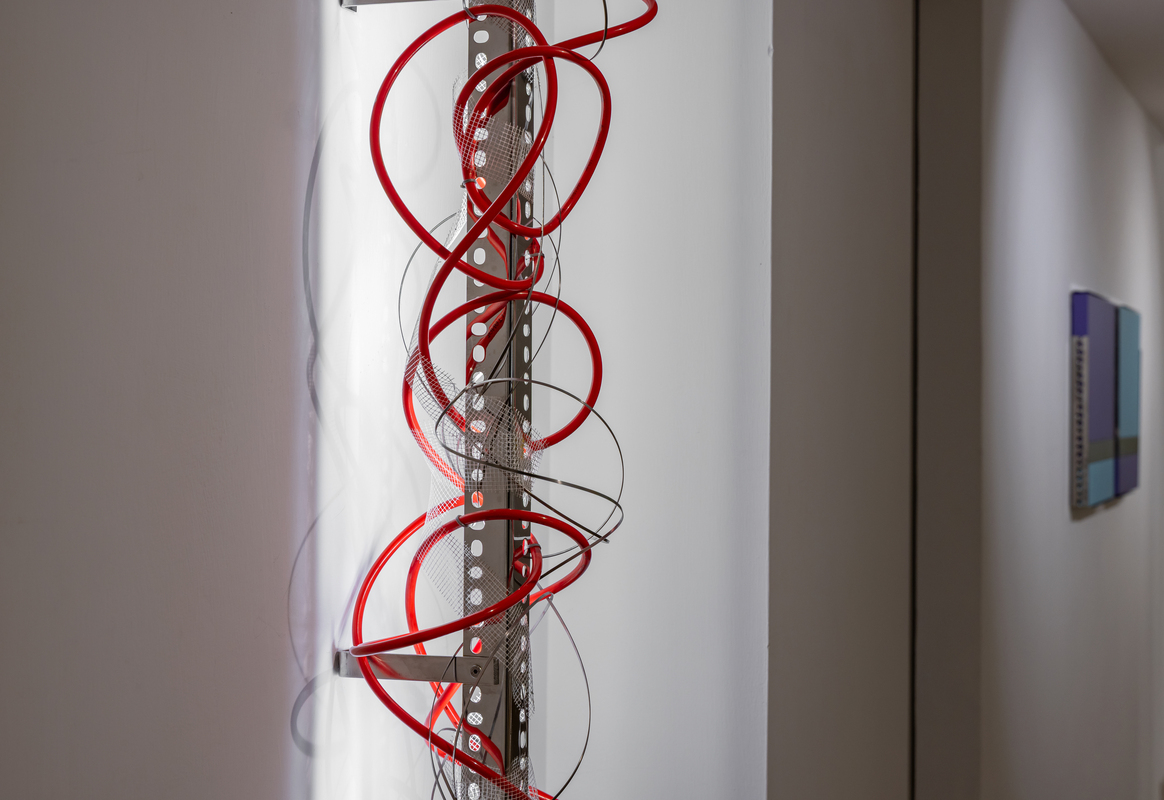 Prime’s artworks appear to be strange hybrids of the past and the future. Constructed entirely of recycled and industrial materials, they mimic an architectural presence while also alluding to the myriad types of constructions that humans create.