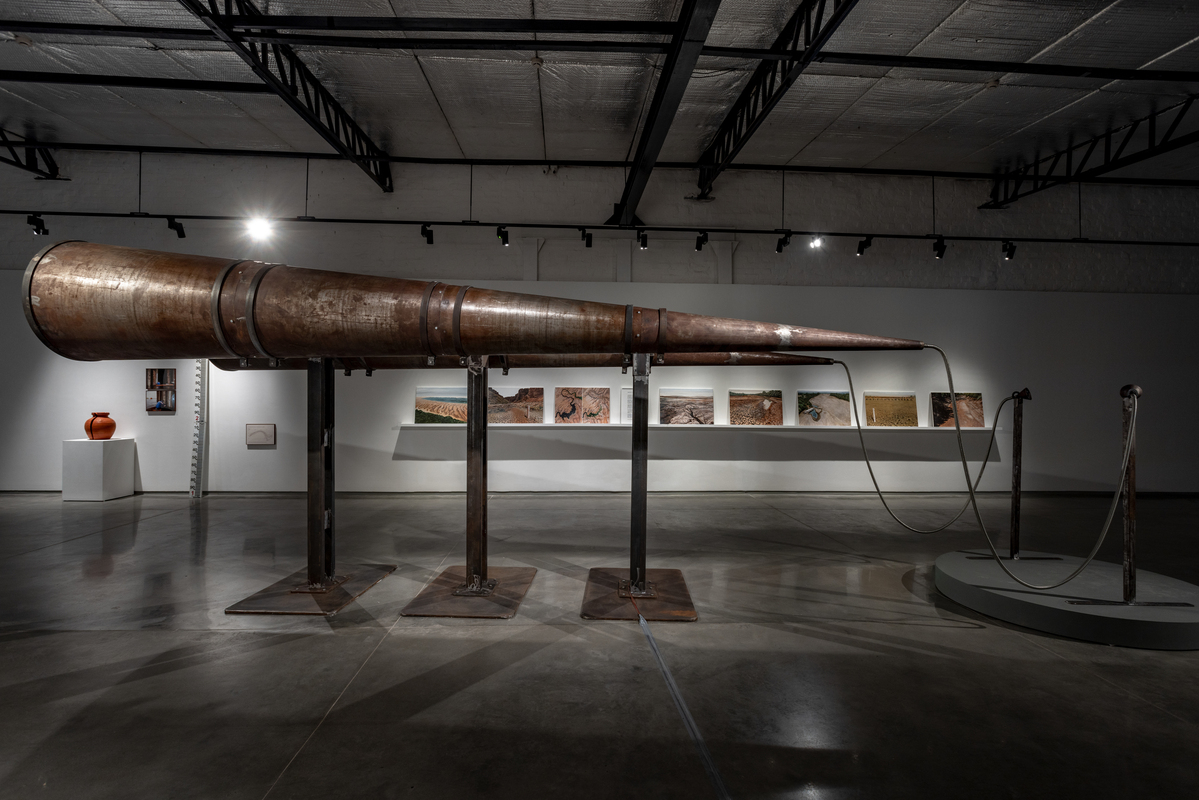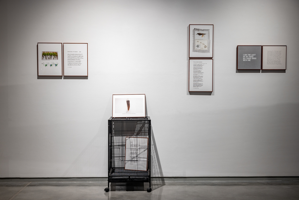 The centerpiece of the exhibition is a large-scale sculpture entitled Requiem (The Last Call), a continuation of a series of sound pieces resembling antiquated audio technologies that the artist began in 2017. The subjects of the work are recordings of bird calls from different parts of the world from eleven species that are now extinct. Viewers will step onto a pedestal, enabling them to hear these recordings from the sculpture itself. The work is a poignant artifact of simple creatures now lost, available to us only as historical archives, when in 2023 the International Union for Conservation of Nature decreed that 9,760 species are at extremely high risk of extinction in the wild.
