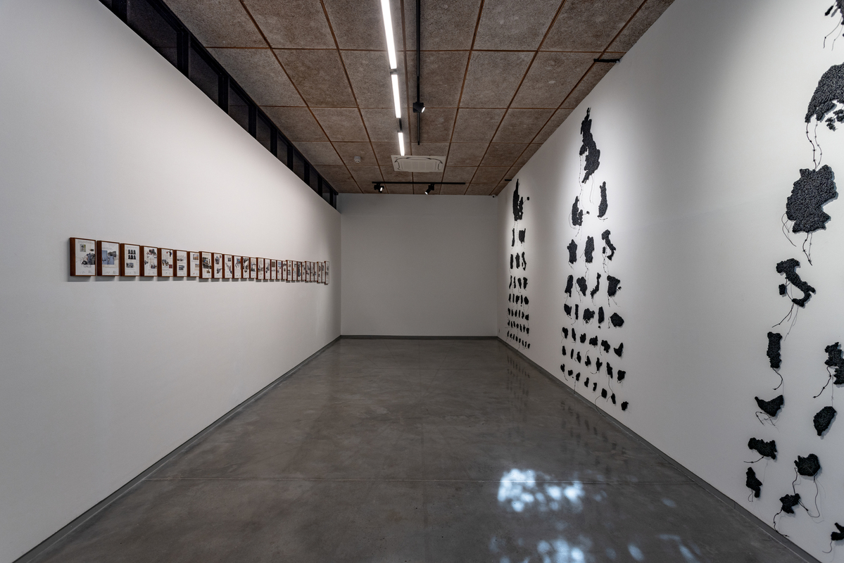 A large-scale wall triptych entitled Pattern Recognition consists of three pyramidal constructions which document the international mobility available to citizens of different countries. Small bundles of electrical cords are formed into the shapes of nations, some are recognizable (such as Japan, the US, Spain, etc.), while most remain indistinct and abstract blobs. The citizens of the nation at the top of each pyramid enjoy the most freedom as to how many other countries they can travel to without the need of a specialized visa in their passport. Those in the bottom rows require the most number of visas. India is in the second-to-last row in all cases. The work records the strange, almost irrational, privileges that certain humans have over others. Complementing the work is a set of photographs the artist sourced from mass media, registering actual human conflicts that are both the causes and effects of social unrest (such as climate change, the pandemic, and political turmoil).