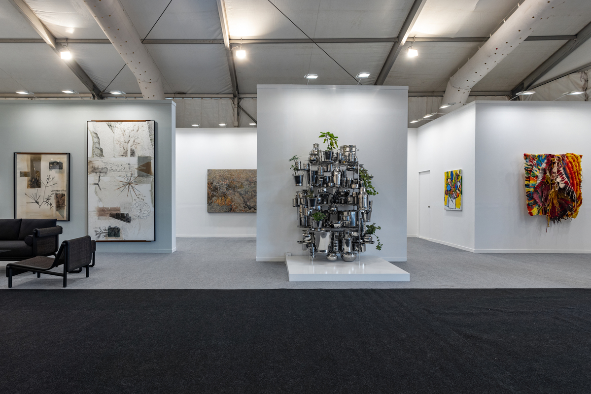 On view at the booth will be archival pigment prints by Dayanita Singh. Created over two decades, the works showcase the breadth of mediums used by the artist. Singh’s ‘Architectural Montages’ features archival pigment prints that are innovative constructions blending fragments of real spaces into imagined ones, defying traditional perspectives on time, place and reality. Rooted in her fascination with light and form, these capture architectural elements from various eras and locations, including structures in India, Japan, Italy and Sri Lanka. Bharti Kher’s 2018 sculpture, entitled "The Watchman", exemplifies her fascination with the iconography of mythologies and hybridized figures, as it combines the male and the female, alluding to the androgynous form of Ardhnarisvara. Dual identity is explored with a different approach by London-based Indian artist Raghav Babbar, whose figurative works bring to life subjects rooted in his Indian heritage. His technique has drawn comparisons with 20th century British styles, particularly his layering of oil paint and bold brush strokes.