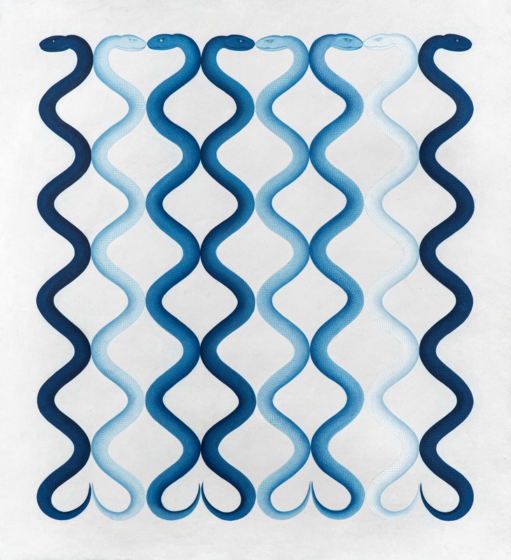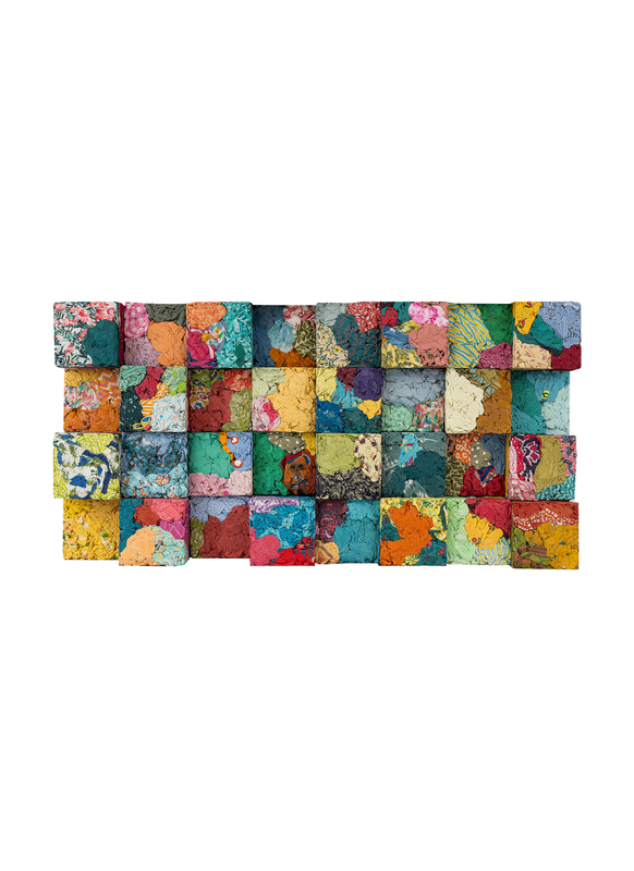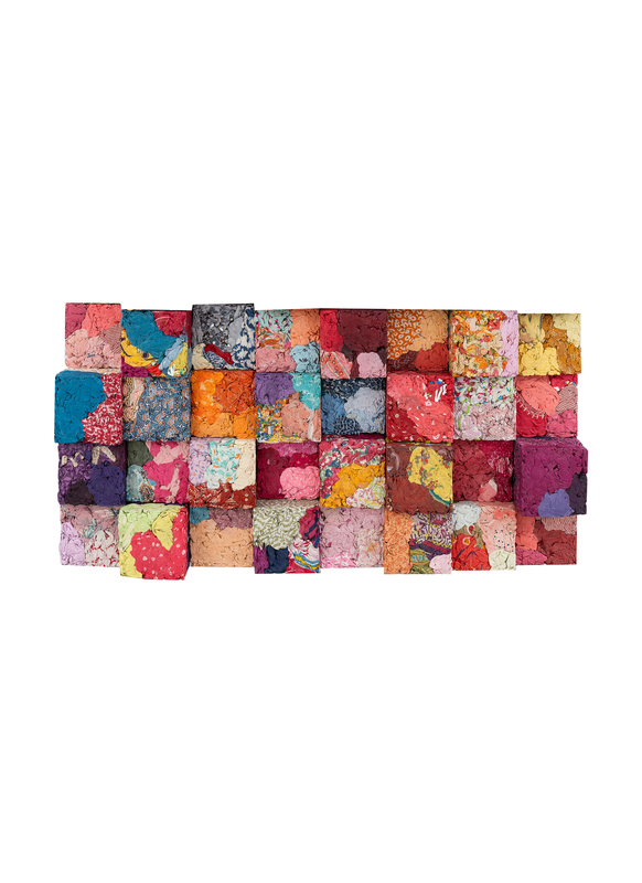Most of the works are rooted in their use of rather unconventional materials, the imagery and compositions resulting from investigations by the artists into the materials themselves. Color is also a predominant element in many of the works, whether amplified or subtle, no surprise as it is one of the main characteristics of India usually cited by visitors. The informed viewer will be able to discern the influence of a number of styles of Western Modern Art (such as Futurism, Op, Color Field, Arte Povera) being fused with distinctly Indian idioms (such as Tantra, textile traditions, and indigenous historical painting styles).