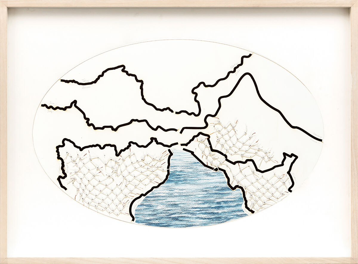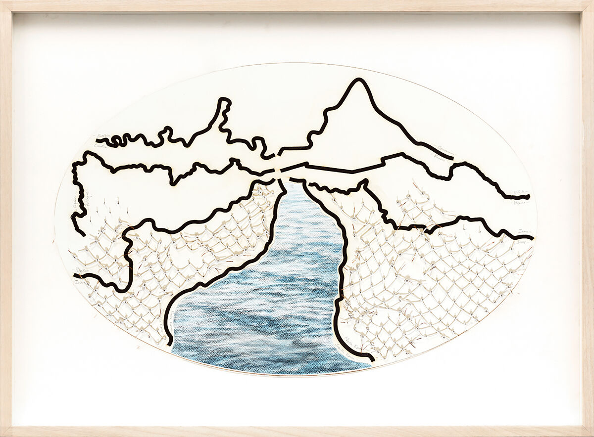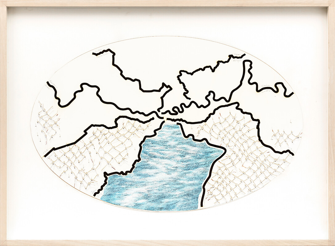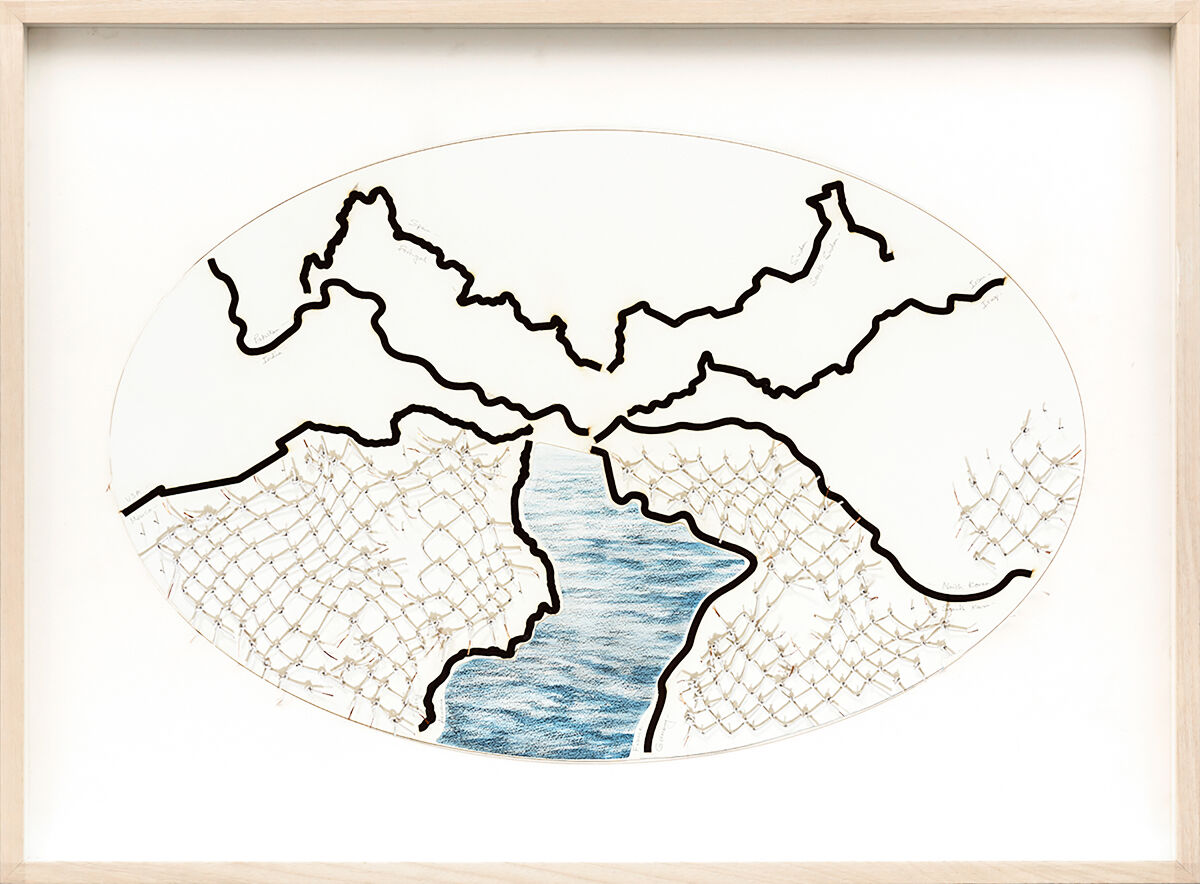 Reena Saini Kallat’s (b. 1973, Delhi, India) practice spanning drawing, photography, sculpture and video is concerned with ideas that hold each other in tension—barriers in a world of mobility, porosity in sites of fissure, memorialisation in the aftermath of amnesia, and the promise and illegibility of national legal documents. Kallat’s interest in political and social borders—and their violent cleaving through the land, people and nature—resonates with the continuing aftershocks of the Partition in India, which her family experienced. Kallat has researched various histories of migration, the plunder of shared natural resources for national gain, and archives of disappeared people. The figure of the hybrid has come to hold symbolic potential in Kallat’s practice, as a truant against dividing lines and divisive national narratives. That barriers give way and can be subverted, is an idea that is pronounced in Kallat’s work using electric cables twisted to resemble barbed wire. She uses the paradox of the existence of technology for the free flow of information and restriction on movement to suggest that total isolation is not possible. Where there is contact there is exchange and fusion.