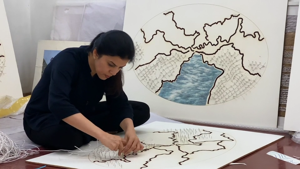 For the past several years, Reena Saini Kallat has been exploring the imagined divisions of the world into separate nation-states. Her own family history overlaps with the partition of the subcontinent into the two entities of India and Pakistan in 1947, an action which resulted in a mass migration with disastrous consequences for many people. It is well known that the man who decided the physical line that would separate the two countries did so from an office in London, having never visited the sub-continent itself, and in great haste, no less. Such divisions were a common occurrence in the aftermath of the Second World War and the dissolution of the colonial structures, but their repercussions continue to be felt acutely today. One could posit that some seventy years later these divisions have acquired an increasing irrelevance due to advances in communication technologies, yet we see a rise in political ideologies that defend these divisions more strongly than ever.Kallat’s approach to this subject is both poetic and speculative. In previous works, she has envisioned both flora and fauna that represent the hybridized state, fusing together the official symbols of two nations’ identities into chimerical new wholes. Other works have illustrated constitutional texts on which national tenets have been defined in languages which transcend cultural and administrative contexts.