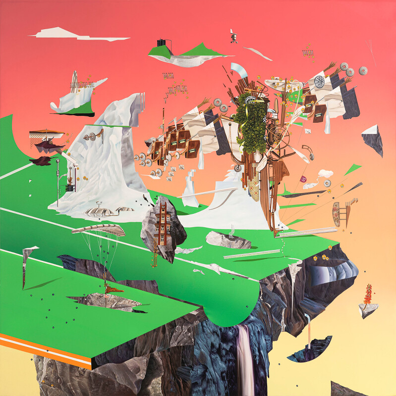 The viewer's journey is precarious, as at any moment it threatens to slip or melt between the gaps of time and space. The ideas of aspirations and anxiety propel us to see the plausible future.
